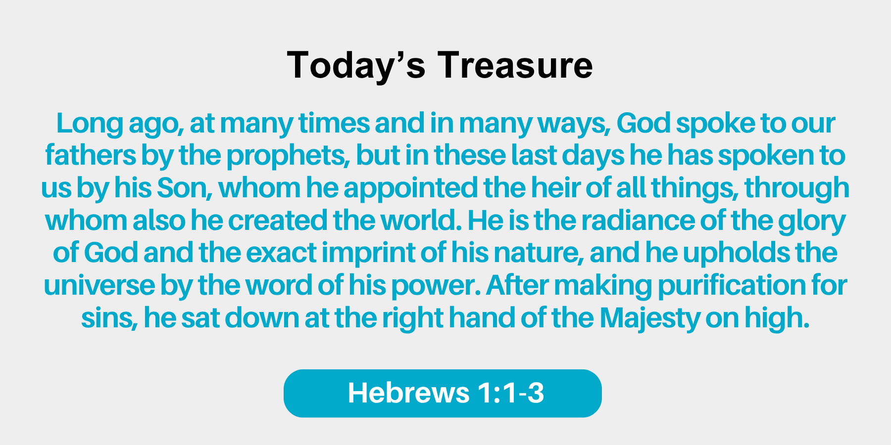 Long ago, at many times and in many ways, God spoke to our fathers by the prophets whom he appointed the heir of all things, through whom also he created the world. He is the radiance of the glory of God and the exact imprint of his nature, and he upholds the universe by the word of his power. After making purification for sins, he sat down at the right hand of the Majesty on high.