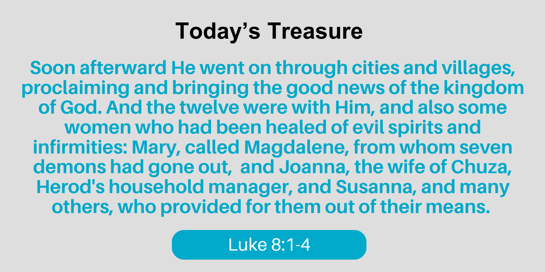 It is hard for us to fully grasp how limited women were in the days of Jesus. They were considered the property of men and had few rights. Women responded with joy to the radical way in which Jesus treated women. Many women followed Him, which means He was their teacher, shepherd, rabbi. They traveled with Jesus and the disciples and “provided for them out of their means”.