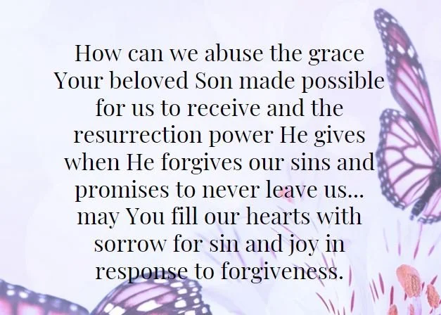 Oh Father, what was it like to stand at the foot of the Cross? A physical darkness descends on the earth and angels watched as God turned His back on His only Son. How can we abuse the grace Your beloved Son made possible for us to receive and the resurrection power He gives when He forgives our sins and promises to never leave us? As we remember those awful hours, may You fill our hearts with sorrow for sin and joy in response to forgiveness.