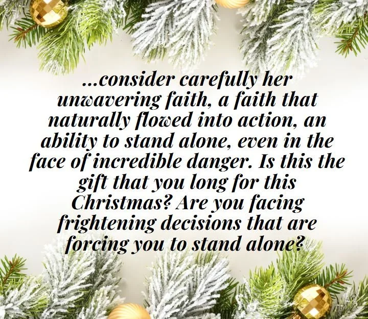 There are so many life lessons we can learn from Rahab’s story but for today, consider carefully her unwavering faith, a faith that naturally flowed into action, an ability to stand alone, even in the face of incredible danger. Is this the gift that you long for this Christmas? Are you facing frightening decisions that are forcing you to stand alone? One of the meanings of Boaz is “in Him is strength.” Did Rahab and Salmon give their son this name as a reminder that only in the Lord is the strength required to stand alone, that Rahab’s act of faith in helping the Israelites was fueled by the strength of the Lord, not her own strength? Review Today’s Treasure and imagine Rahab whispering this prayer as she held her baby Boaz, acknowledging that no matter what life threw at her, she would find rest and refuge in her God. This kind of rest comes from choosing trust in God instead of fear. As we travel closer to Christmas, Rahab reaches back to grab your hand and eagerly tell you that the same redeeming love and life transformation that emboldened her to risk everything can be yours, too.
