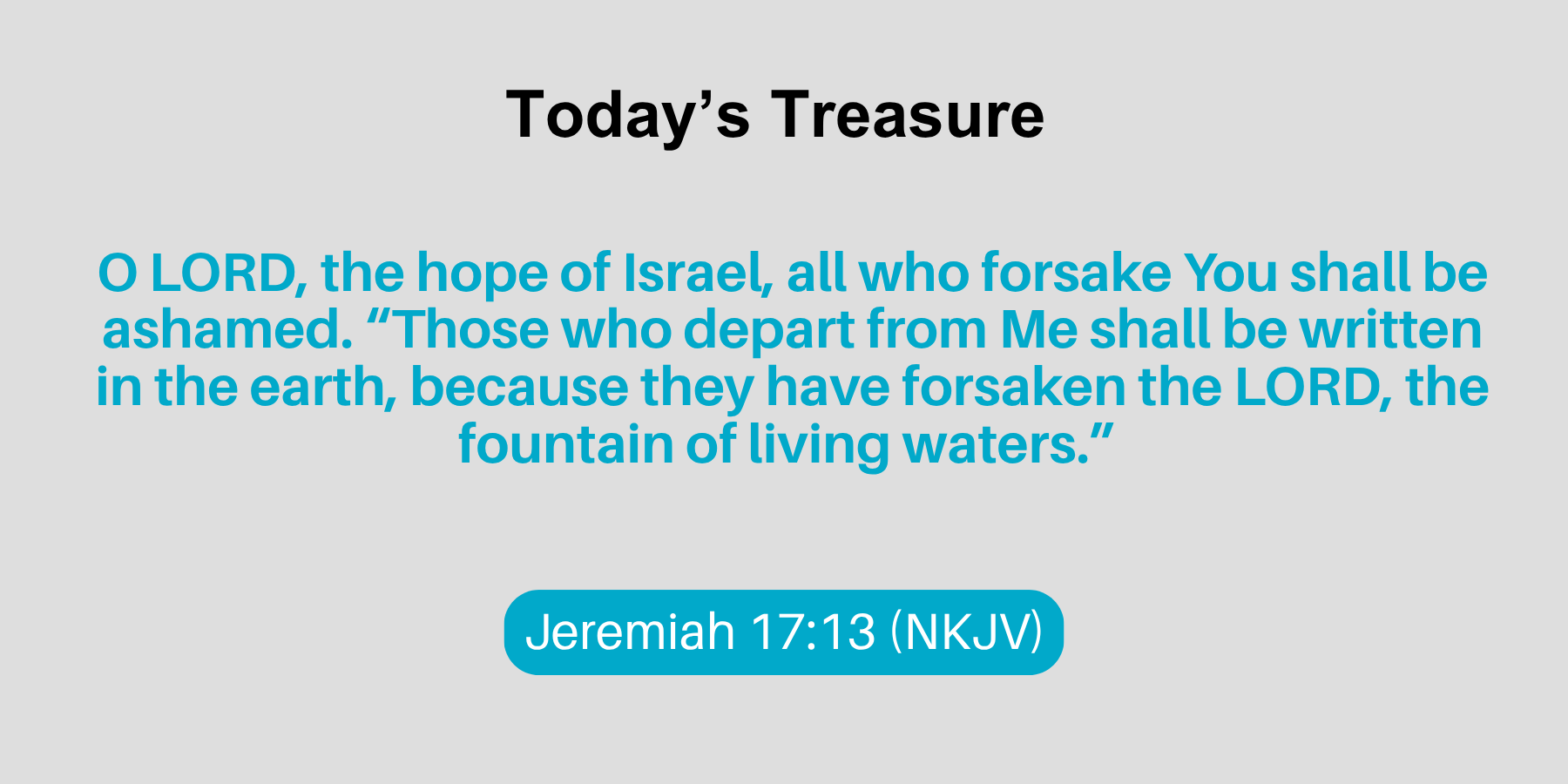 O LORD, the hope of Israel, all who forsake You shall be ashamed. “Those who depart from Me shall be written in the earth, because they have forsaken the LORD, the fountain of living waters.”