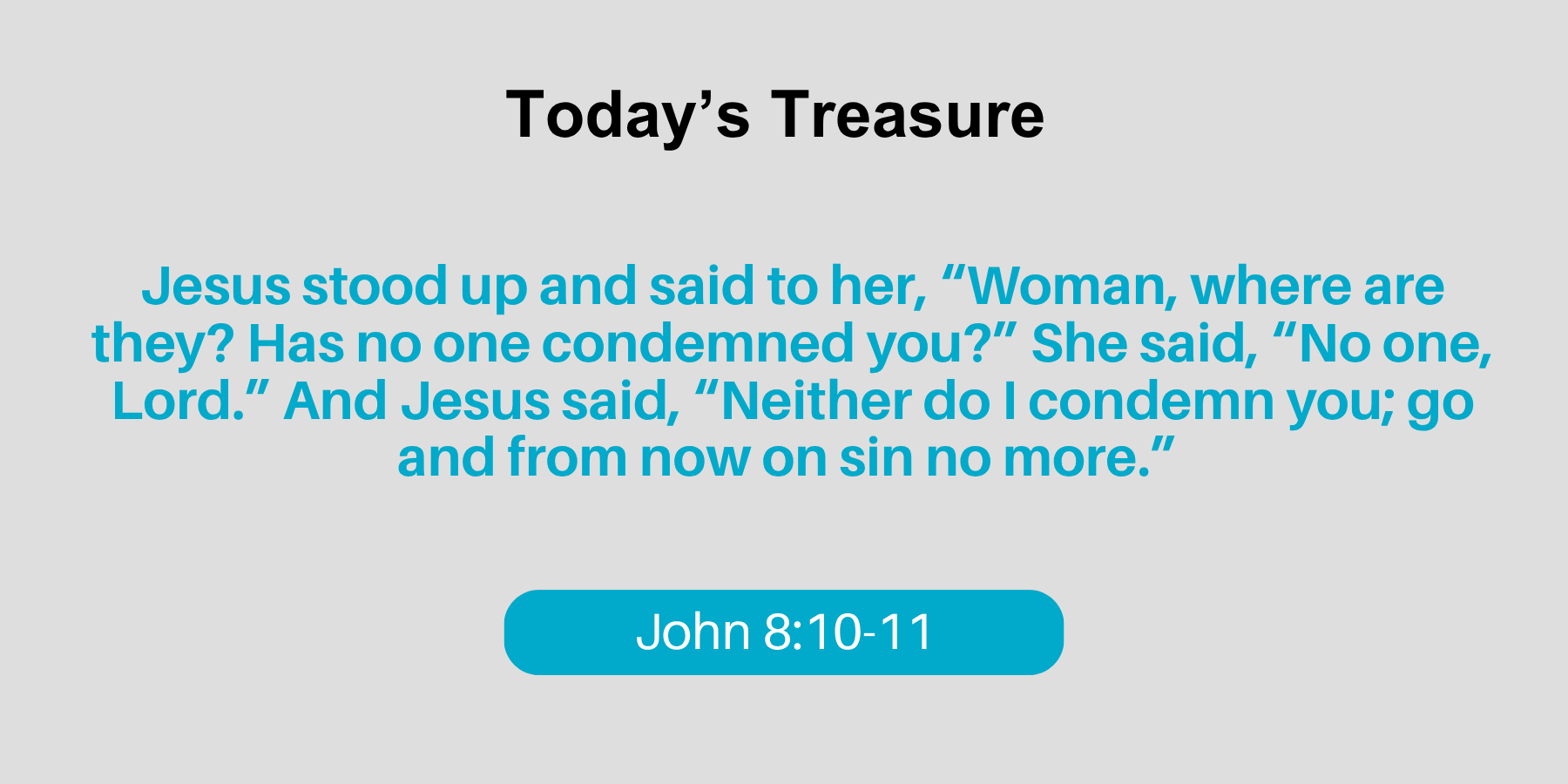 Jesus stood up and said to her, “Woman, where are they? Has no one condemned you?” She said, “No one, Lord.” And Jesus said, “Neither do I condemn you; go and from now on sin no more.”