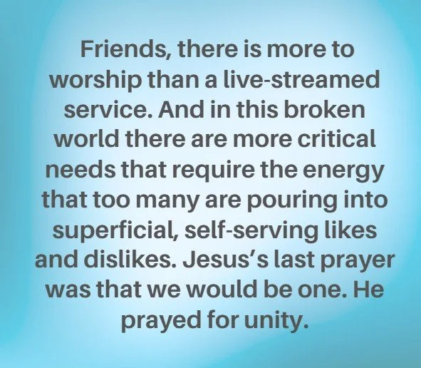 The “Women of the Resurrection” faced similar turmoil in their personal lives, which we face today. Some of them were trapped in isolation, filled with fear, unable to change their circumstances. Then, Jesus. Though it became increasingly dangerous to be associated with Him, these women refused to stay away. Friends, there is more to worship than a live-streamed service. And in this broken world there are more critical needs that require the energy that too many are pouring into superficial, self-serving likes and dislikes. Jesus’s last prayer was that we would be one. He prayed for unity. Our theology compels us to die to self, to gather with other Christians, to meet needs within the context of corporate worship, and to experience the Lord’s touch through the hearts and hands of His people. This is a time where we, too, can experience the presence of Jesus in a new way that equips and enables us to walk by faith on this journey.